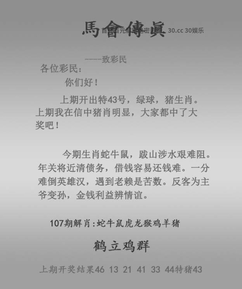 106期:男女②肖【男肖+鸡猪】开:猪43准 |